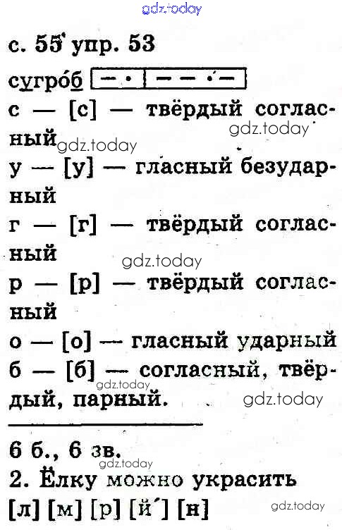 На страницах сайта gdz.today вы найдете учебный и вспомогательный материал, направленный на улучшения знаний школьной программы. ГДЗ - онлайн мир знаний Решение к теме: Звуки и буквы 53 Учебнику по Русскому языку для 2 класса Рудяков, Челышева Грамота 2012