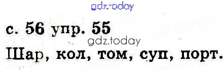 На страницах сайта gdz.today вы найдете учебный и вспомогательный материал, направленный на улучшения знаний школьной программы. ГДЗ - онлайн мир знаний Решение к теме: Звуки и буквы 55 Учебнику по Русскому языку для 2 класса Рудяков, Челышева Грамота 2012