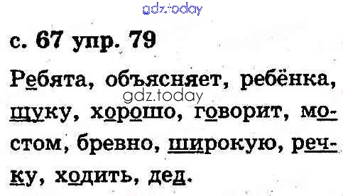 На страницах сайта gdz.today вы найдете учебный и вспомогательный материал, направленный на улучшения знаний школьной программы. ГДЗ - онлайн мир знаний Решение к теме: Звуки и буквы 79 Учебнику по Русскому языку для 2 класса Рудяков, Челышева Грамота 2012