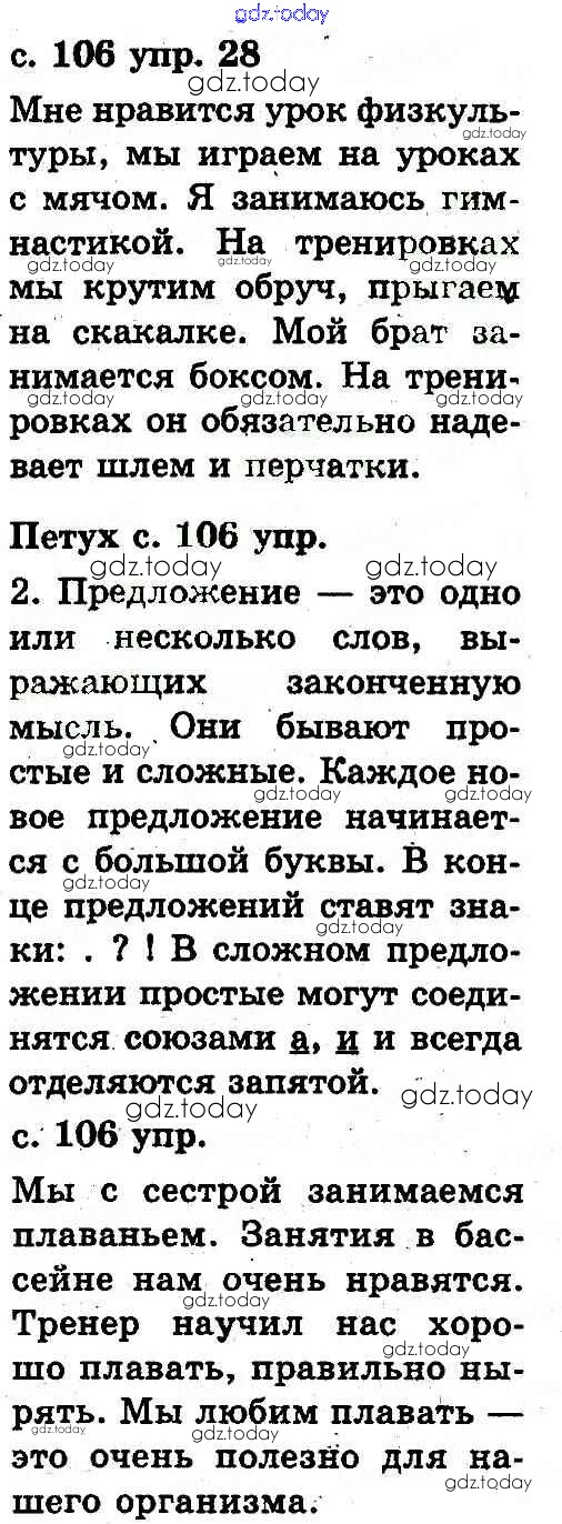 На страницах сайта gdz.today вы найдете учебный и вспомогательный материал, направленный на улучшения знаний школьной программы. ГДЗ - онлайн мир знаний Решение к теме: Предложение 28 Учебнику по Русскому языку для 2 класса Рудяков, Челышева Грамота 2012