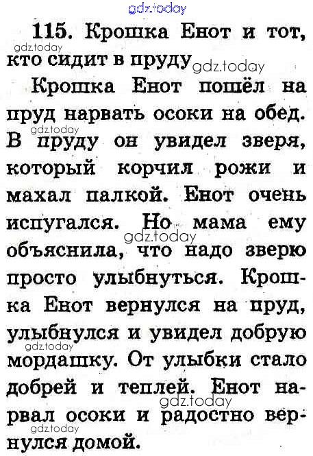 На страницах сайта gdz.today вы найдете учебный и вспомогательный материал, направленный на улучшения знаний школьной программы. ГДЗ - онлайн мир знаний Рішення до Вправи 115 Учебнику по Русскому языку для 2 класса Самонова, Статовка Генеза 2012