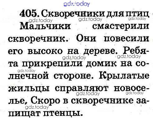 На страницах сайта gdz.today вы найдете учебный и вспомогательный материал, направленный на улучшения знаний школьной программы. ГДЗ - онлайн мир знаний Рішення до Вправи 405 Учебнику по Русскому языку для 2 класса Самонова, Статовка Генеза 2012