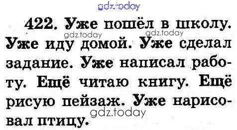 На страницах сайта gdz.today вы найдете учебный и вспомогательный материал, направленный на улучшения знаний школьной программы. ГДЗ - онлайн мир знаний Рішення до Вправи 422 Учебнику по Русскому языку для 2 класса Самонова, Статовка Генеза 2012
