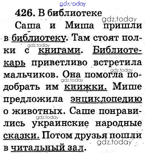 На страницах сайта gdz.today вы найдете учебный и вспомогательный материал, направленный на улучшения знаний школьной программы. ГДЗ - онлайн мир знаний Рішення до Вправи 426 Учебнику по Русскому языку для 2 класса Самонова, Статовка Генеза 2012