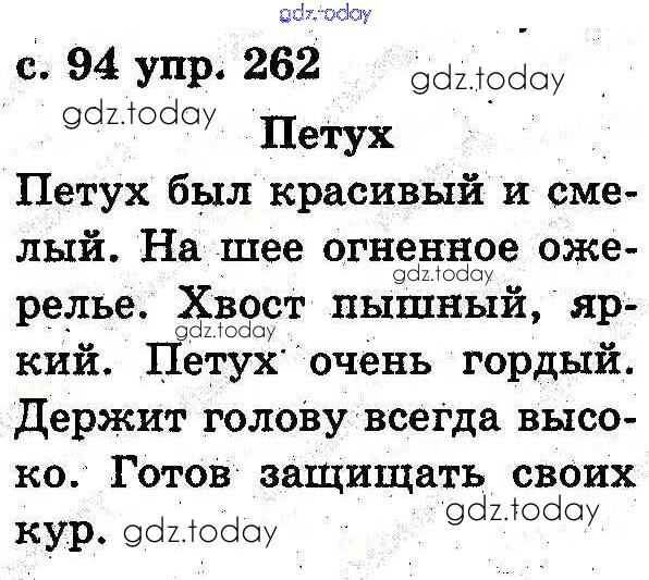 На страницах сайта gdz.today вы найдете учебный и вспомогательный материал, направленный на улучшения знаний школьной программы. ГДЗ - онлайн мир знаний Решение к разделу: Текст 262 Учебнику по Русскому языку для 2 класса Каневская, Олейник Генеза 2012