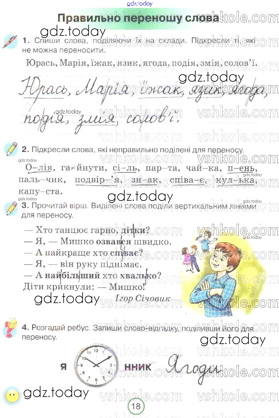 Ответы к Рішення до Сторінки 18 Рабочей тетради по Украинскому языку для 2 класса Пономарева Орiон 2019