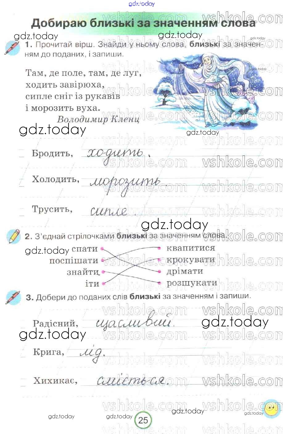 На страницах сайта gdz.today вы найдете учебный и вспомогательный материал, направленный на улучшения знаний школьной программы. ГДЗ - онлайн мир знаний Рішення до Сторінки 25 Рабочей тетради по Украинскому языку для 2 класса Пономарева Орiон 2019