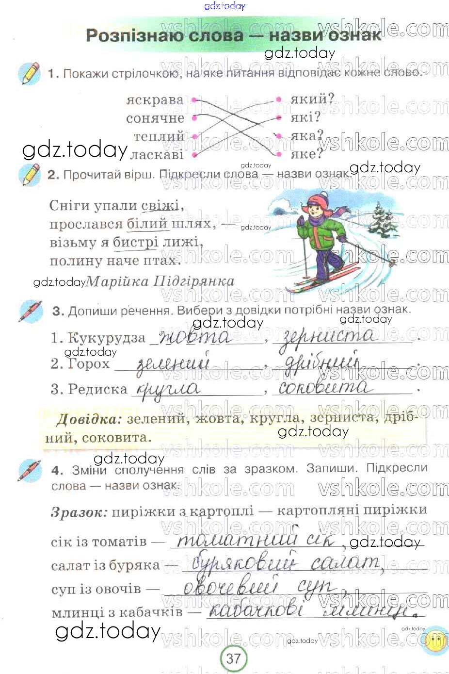 На страницах сайта gdz.today вы найдете учебный и вспомогательный материал, направленный на улучшения знаний школьной программы. ГДЗ - онлайн мир знаний Рішення до Сторінки 37 Рабочей тетради по Украинскому языку для 2 класса Пономарева Орiон 2019