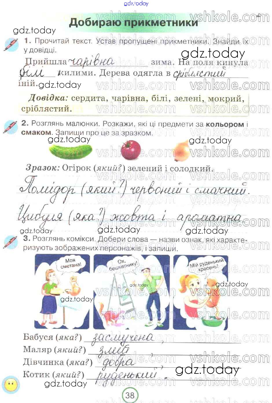 На страницах сайта gdz.today вы найдете учебный и вспомогательный материал, направленный на улучшения знаний школьной программы. ГДЗ - онлайн мир знаний Рішення до Сторінки 38 Рабочей тетради по Украинскому языку для 2 класса Пономарева Орiон 2019