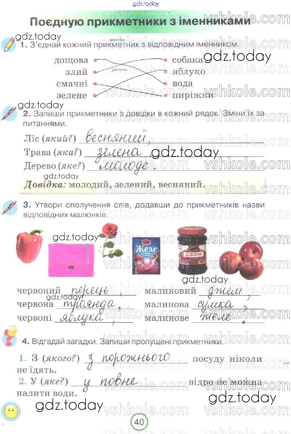 Ответы к Рішення до Сторінки 40 Рабочей тетради по Украинскому языку для 2 класса Пономарева Орiон 2019
