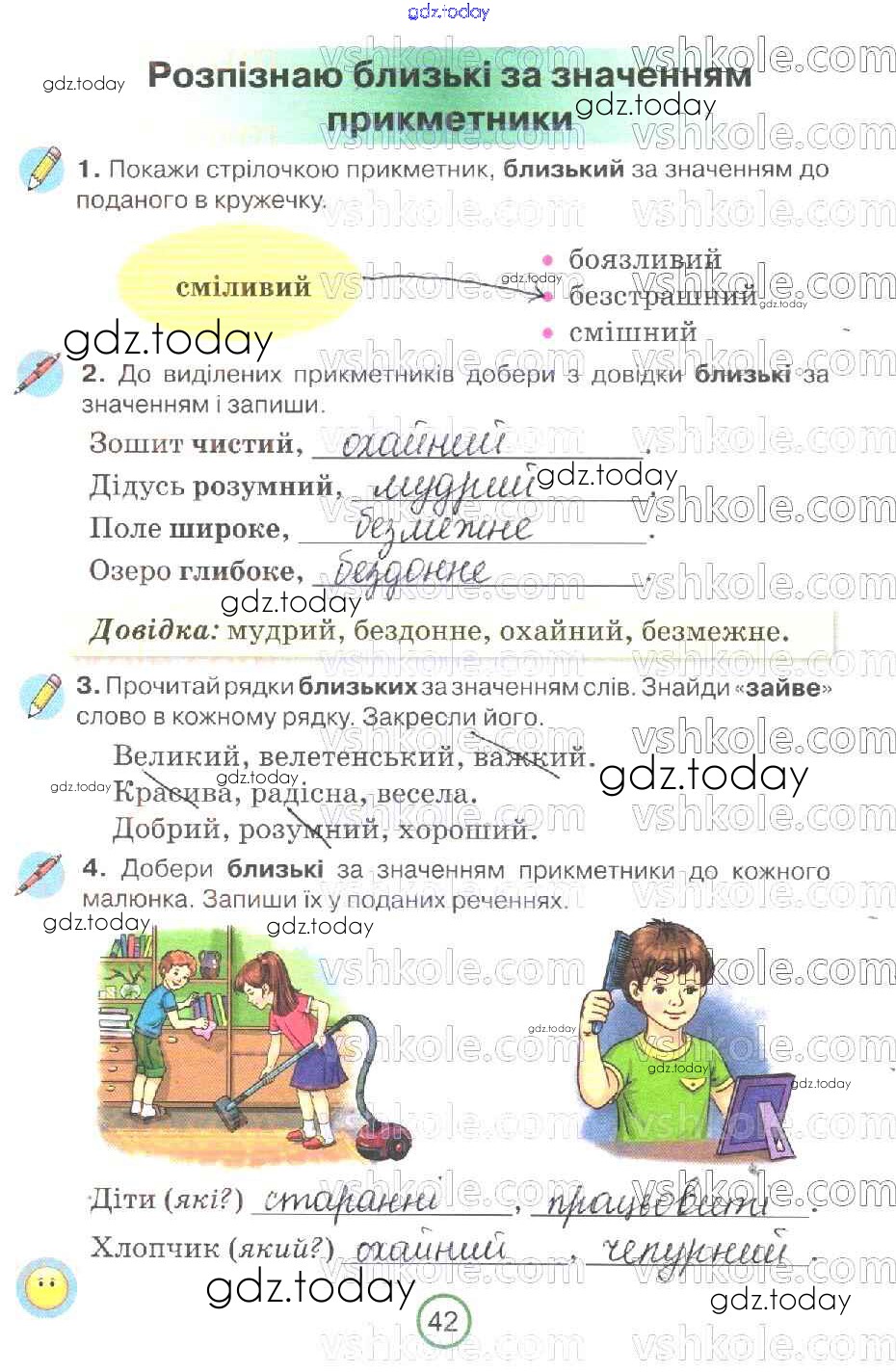 На страницах сайта gdz.today вы найдете учебный и вспомогательный материал, направленный на улучшения знаний школьной программы. ГДЗ - онлайн мир знаний Рішення до Сторінки 42 Рабочей тетради по Украинскому языку для 2 класса Пономарева Орiон 2019