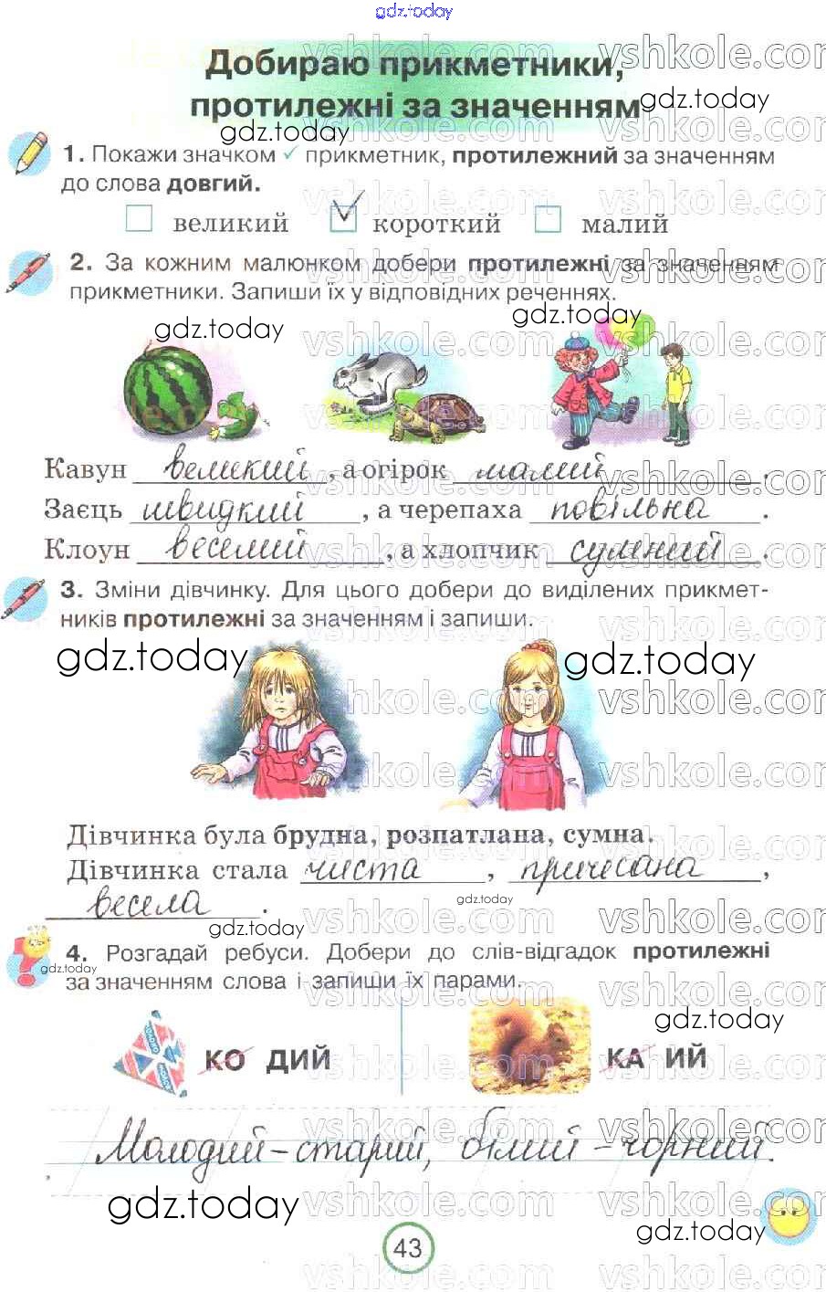 На страницах сайта gdz.today вы найдете учебный и вспомогательный материал, направленный на улучшения знаний школьной программы. ГДЗ - онлайн мир знаний Рішення до Сторінки 43 Рабочей тетради по Украинскому языку для 2 класса Пономарева Орiон 2019