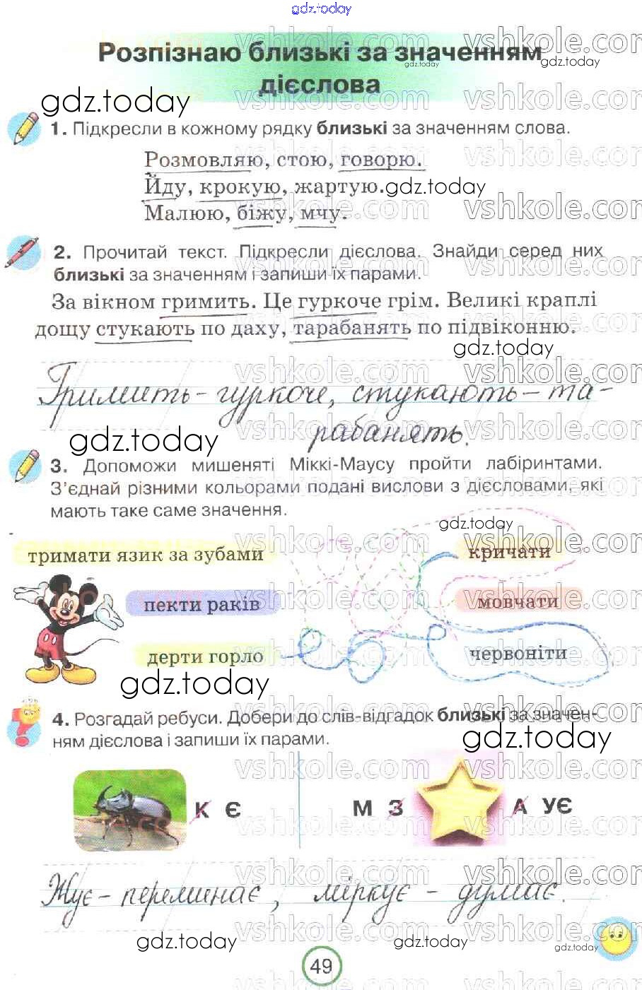 На страницах сайта gdz.today вы найдете учебный и вспомогательный материал, направленный на улучшения знаний школьной программы. ГДЗ - онлайн мир знаний Рішення до Сторінки 49 Рабочей тетради по Украинскому языку для 2 класса Пономарева Орiон 2019