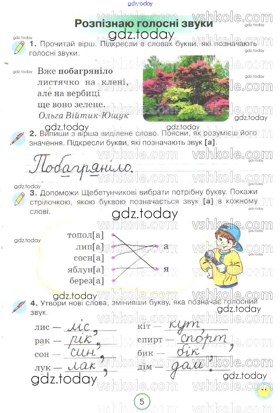На страницах сайта gdz.today вы найдете учебный и вспомогательный материал, направленный на улучшения знаний школьной программы. ГДЗ - онлайн мир знаний Рішення до Сторінки 5 Рабочей тетради по Украинскому языку для 2 класса Пономарева Орiон 2019