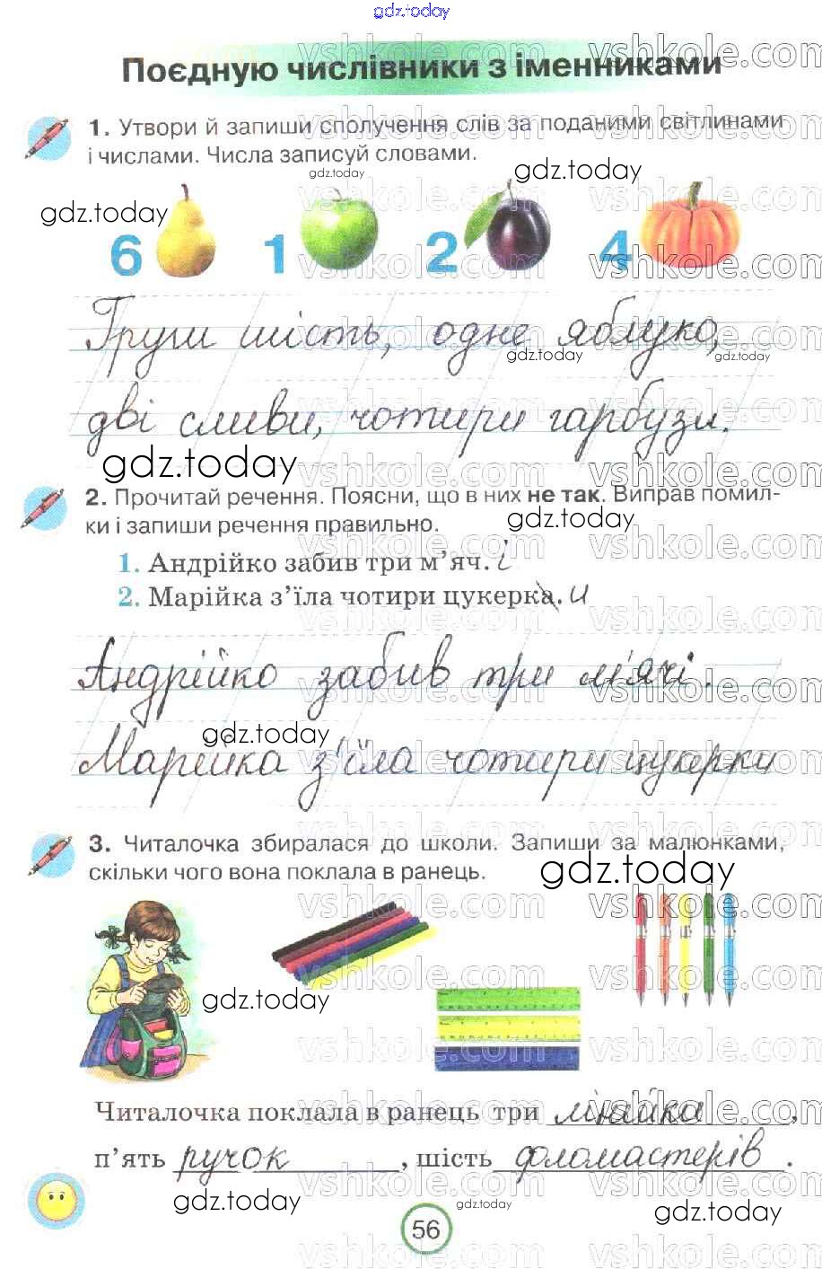 На страницах сайта gdz.today вы найдете учебный и вспомогательный материал, направленный на улучшения знаний школьной программы. ГДЗ - онлайн мир знаний Рішення до Сторінки 56 Рабочей тетради по Украинскому языку для 2 класса Пономарева Орiон 2019