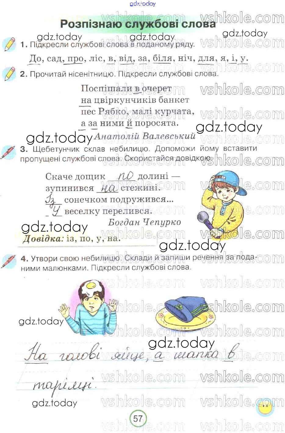 На страницах сайта gdz.today вы найдете учебный и вспомогательный материал, направленный на улучшения знаний школьной программы. ГДЗ - онлайн мир знаний Рішення до Сторінки 57 Рабочей тетради по Украинскому языку для 2 класса Пономарева Орiон 2019