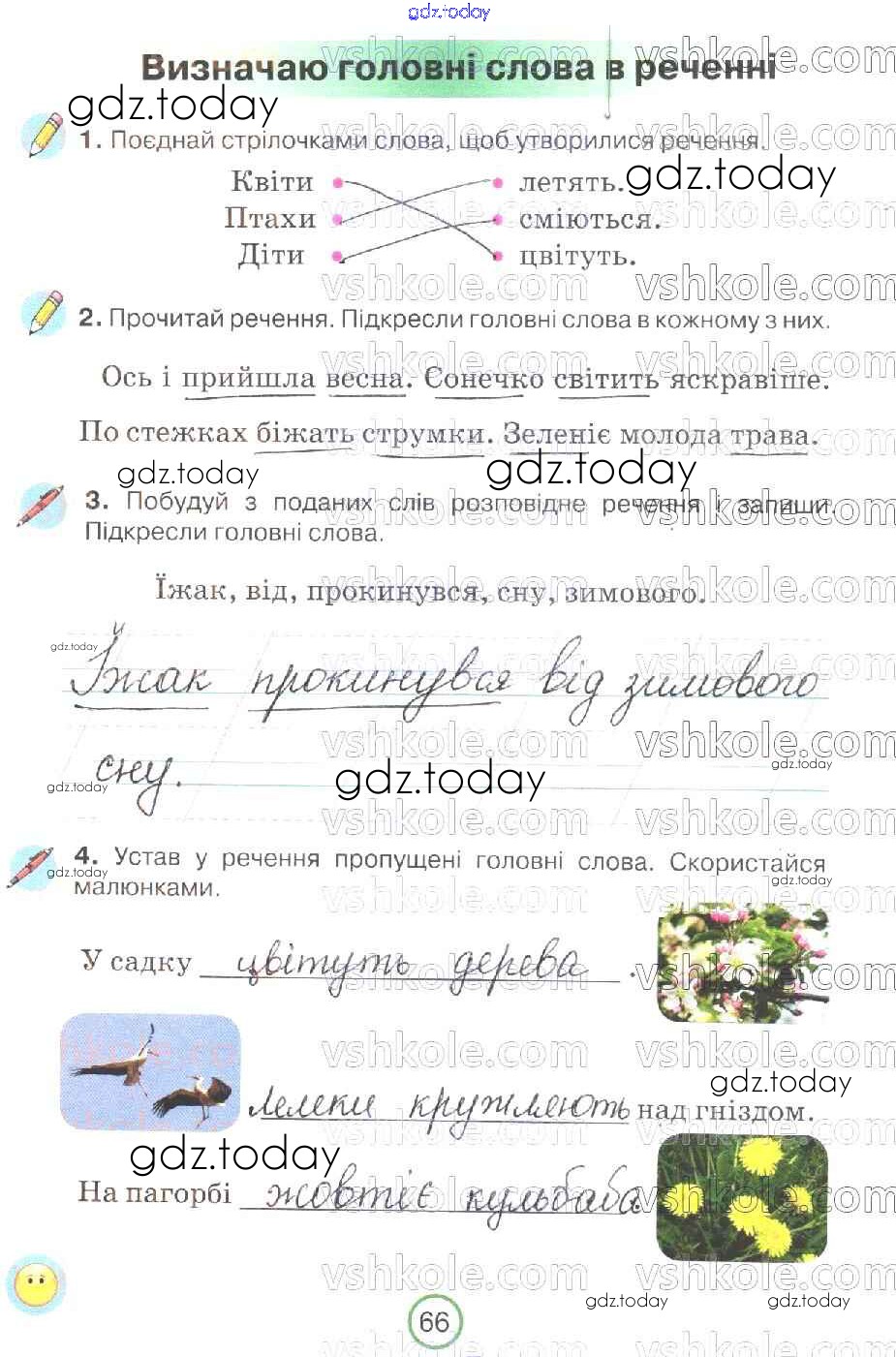 На страницах сайта gdz.today вы найдете учебный и вспомогательный материал, направленный на улучшения знаний школьной программы. ГДЗ - онлайн мир знаний Рішення до Сторінки 66 Рабочей тетради по Украинскому языку для 2 класса Пономарева Орiон 2019