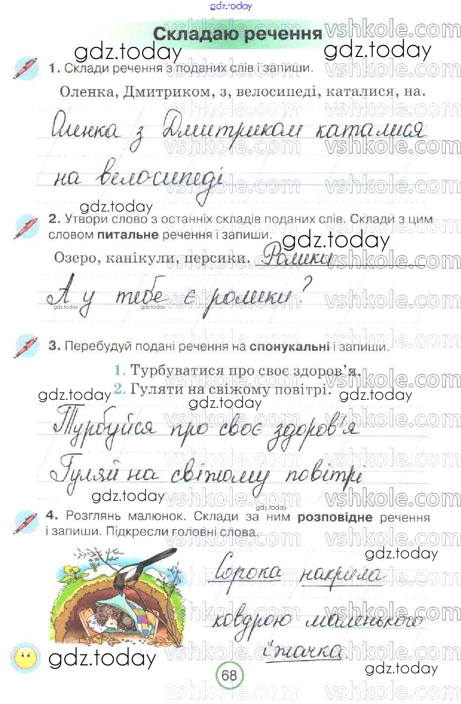 На страницах сайта gdz.today вы найдете учебный и вспомогательный материал, направленный на улучшения знаний школьной программы. ГДЗ - онлайн мир знаний Рішення до Сторінки 68 Рабочей тетради по Украинскому языку для 2 класса Пономарева Орiон 2019