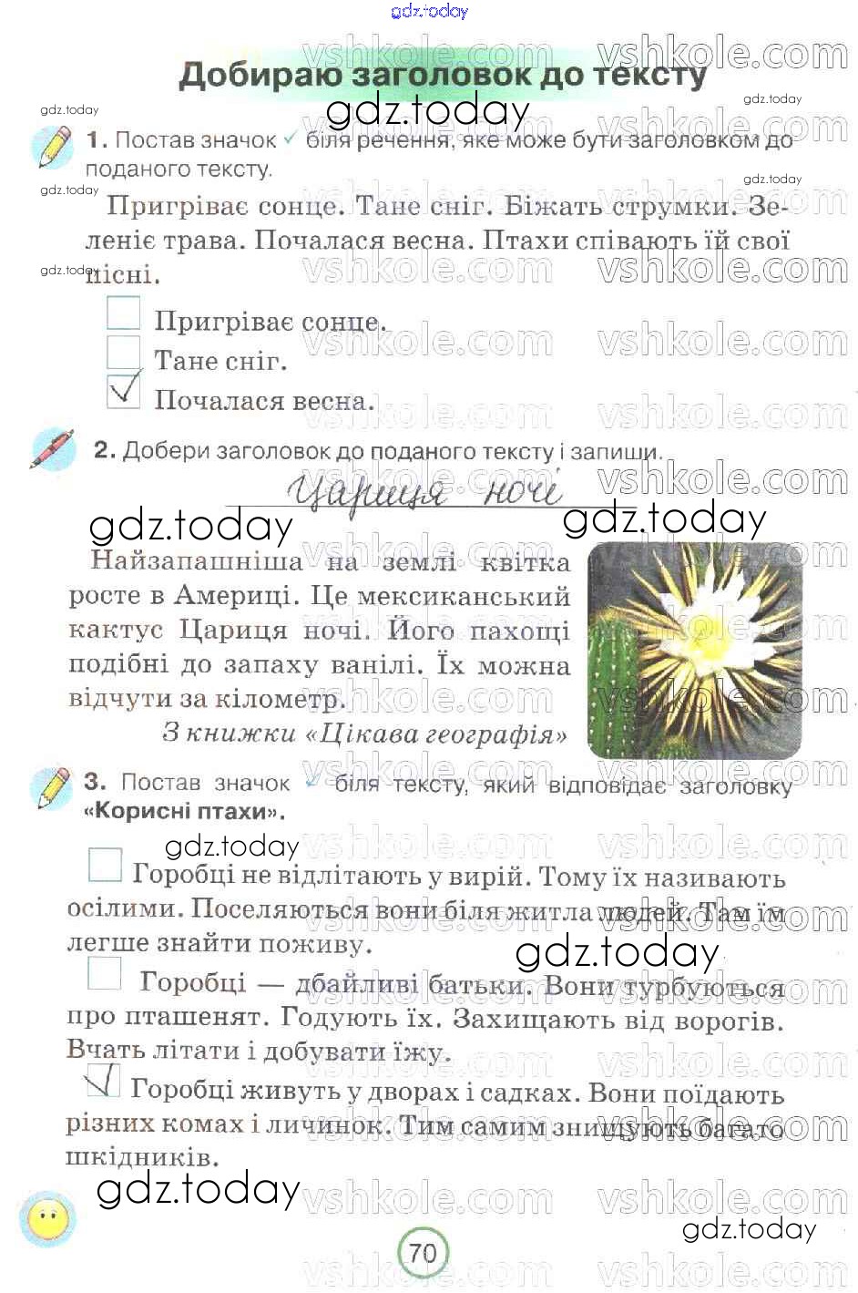 На страницах сайта gdz.today вы найдете учебный и вспомогательный материал, направленный на улучшения знаний школьной программы. ГДЗ - онлайн мир знаний Рішення до Сторінки 70 Рабочей тетради по Украинскому языку для 2 класса Пономарева Орiон 2019