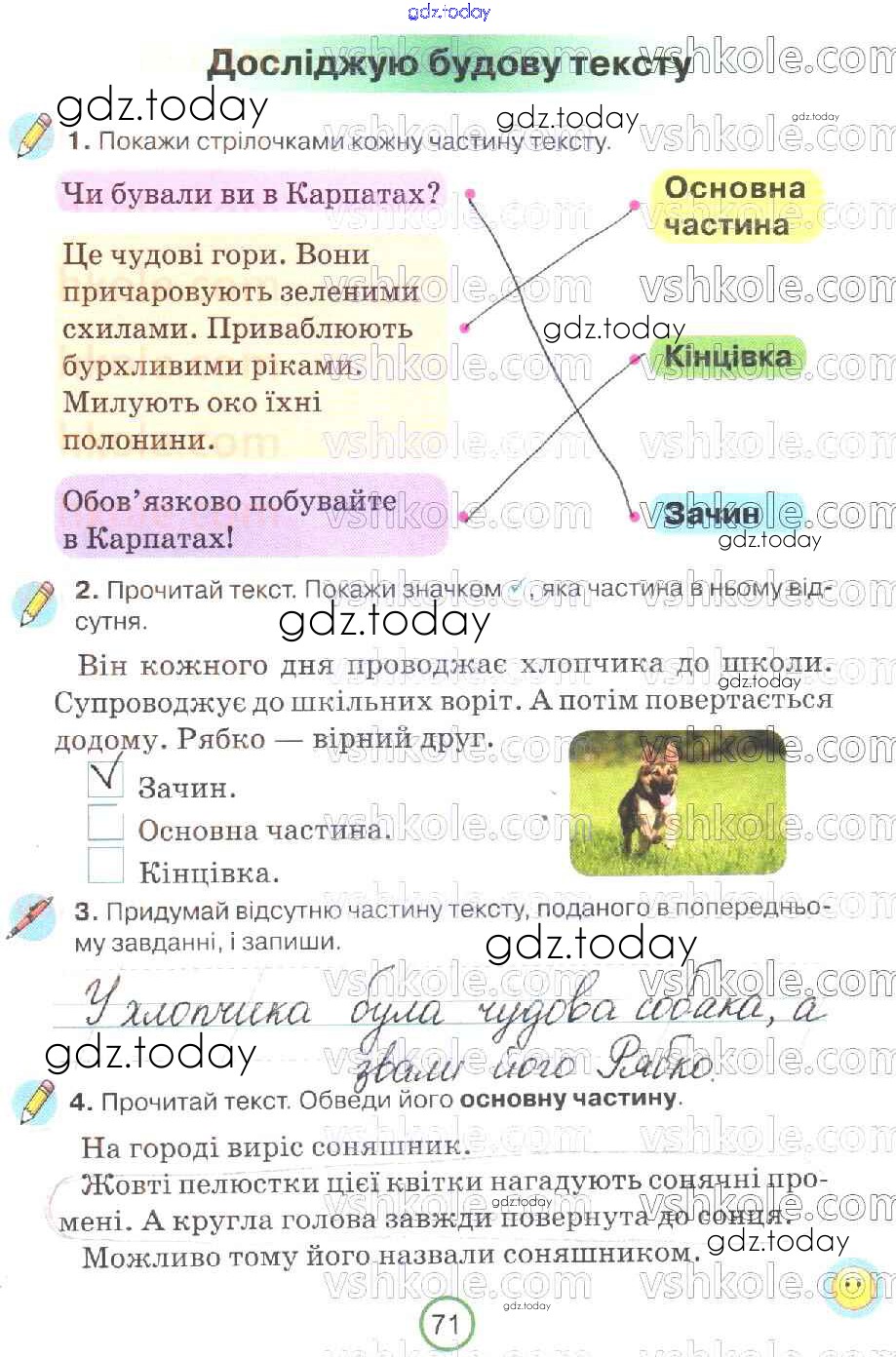 На страницах сайта gdz.today вы найдете учебный и вспомогательный материал, направленный на улучшения знаний школьной программы. ГДЗ - онлайн мир знаний Рішення до Сторінки 71 Рабочей тетради по Украинскому языку для 2 класса Пономарева Орiон 2019