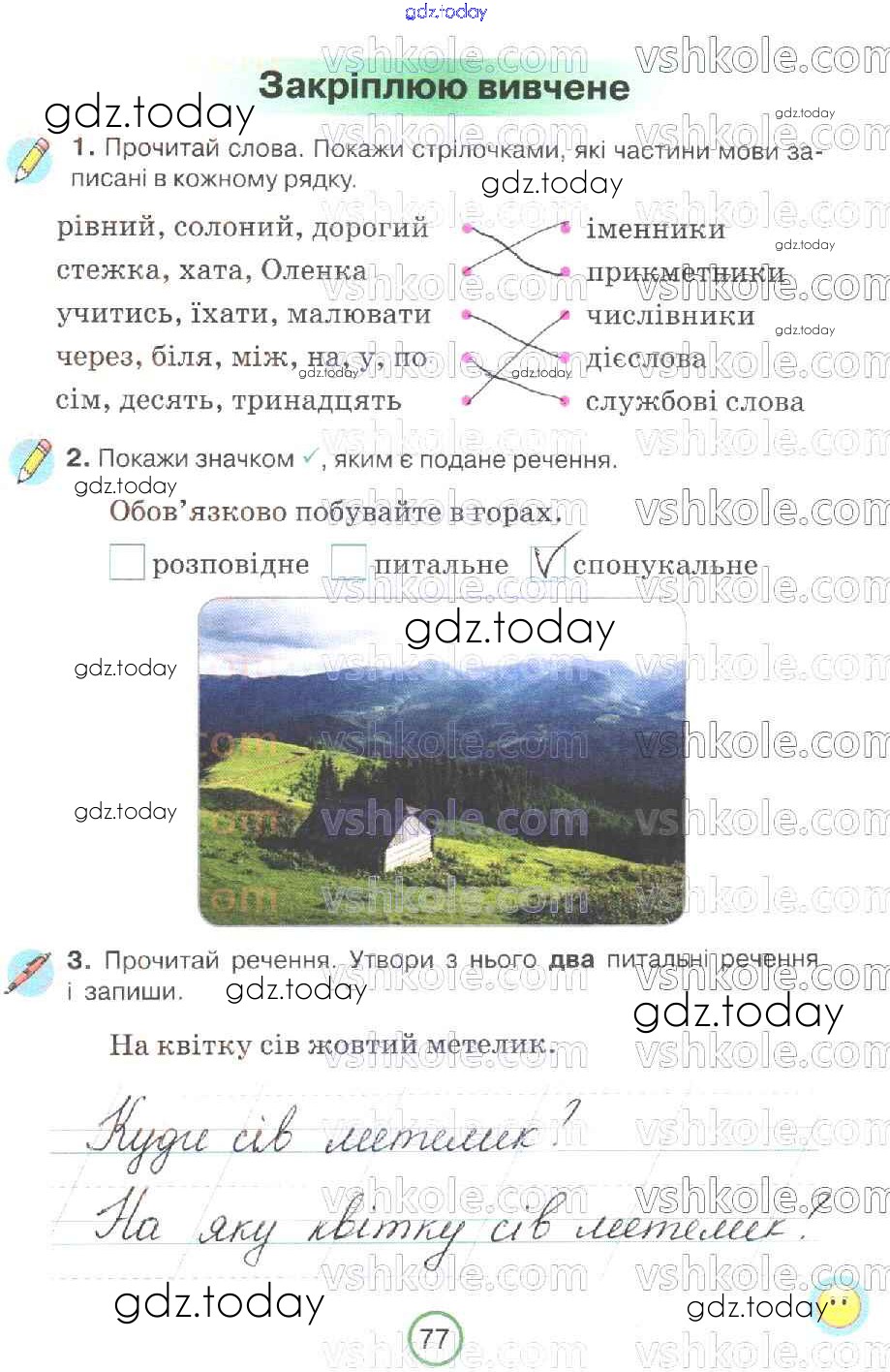 На страницах сайта gdz.today вы найдете учебный и вспомогательный материал, направленный на улучшения знаний школьной программы. ГДЗ - онлайн мир знаний Рішення до Сторінки 77 Рабочей тетради по Украинскому языку для 2 класса Пономарева Орiон 2019