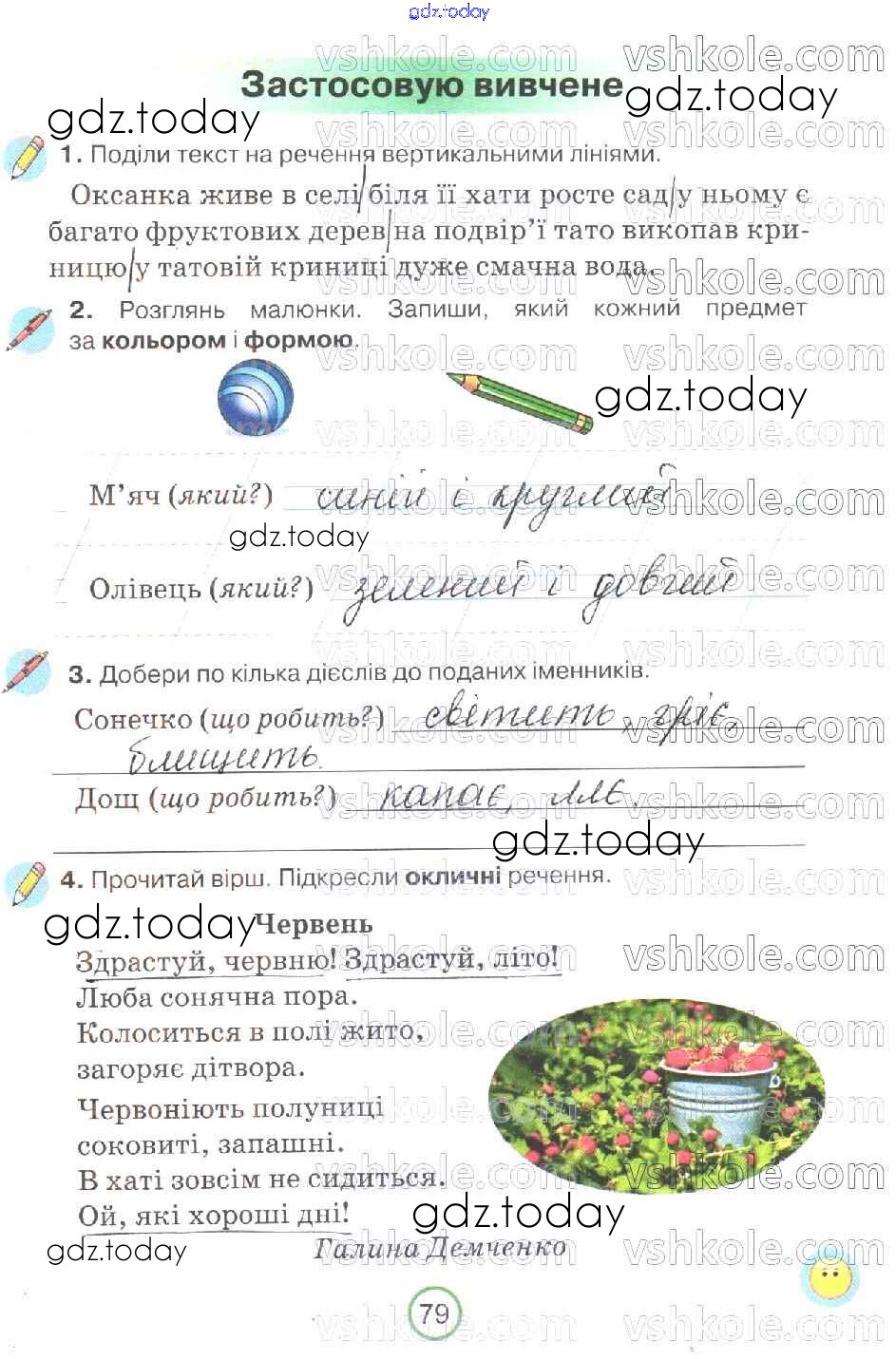 Ответы к Рішення до Сторінки 79 Рабочей тетради по Украинскому языку для 2 класса Пономарева Орiон 2019