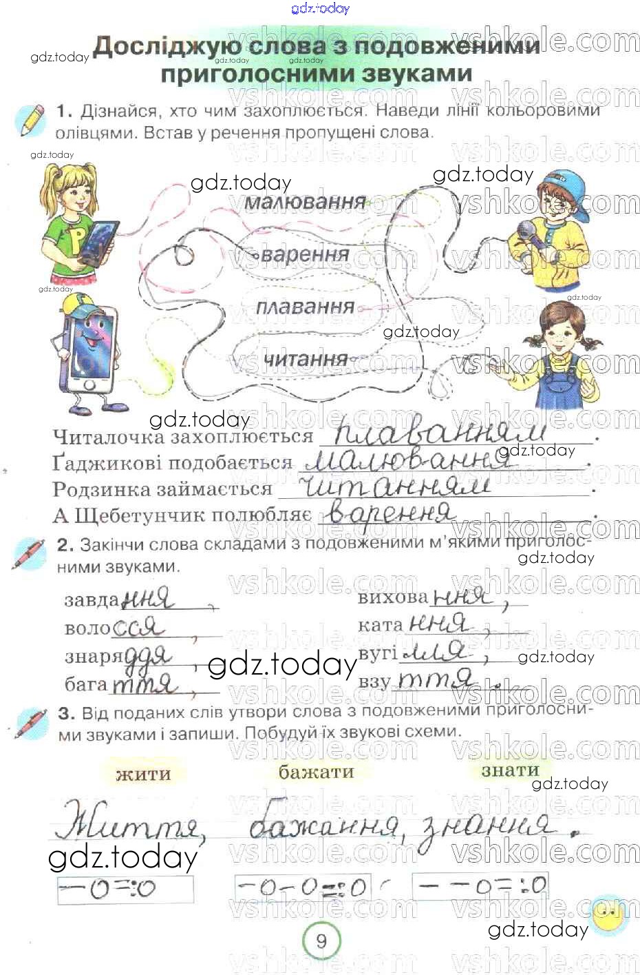 На страницах сайта gdz.today вы найдете учебный и вспомогательный материал, направленный на улучшения знаний школьной программы. ГДЗ - онлайн мир знаний Рішення до Сторінки 9 Рабочей тетради по Украинскому языку для 2 класса Пономарева Орiон 2019