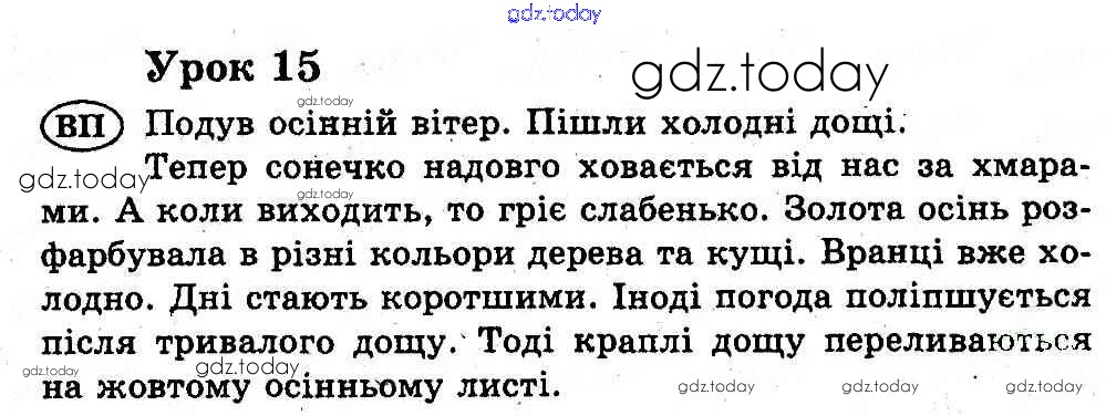 На страницах сайта gdz.today вы найдете учебный и вспомогательный материал, направленный на улучшения знаний школьной программы. ГДЗ - онлайн мир знаний Рішення до Уроки 15 Учебнику по Украинскому языку для 2 класса Гавриш, Маркотенко Генеза 2012