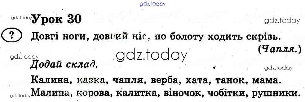 На страницах сайта gdz.today вы найдете учебный и вспомогательный материал, направленный на улучшения знаний школьной программы. ГДЗ - онлайн мир знаний Рішення до Уроки 30 Учебнику по Украинскому языку для 2 класса Гавриш, Маркотенко Генеза 2012