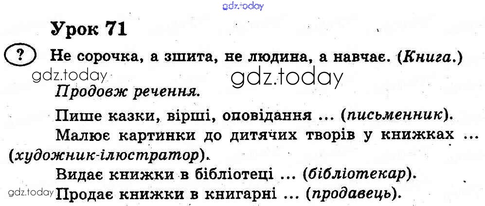 На страницах сайта gdz.today вы найдете учебный и вспомогательный материал, направленный на улучшения знаний школьной программы. ГДЗ - онлайн мир знаний Рішення до Уроки 71 Учебнику по Украинскому языку для 2 класса Гавриш, Маркотенко Генеза 2012