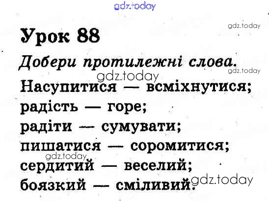 На страницах сайта gdz.today вы найдете учебный и вспомогательный материал, направленный на улучшения знаний школьной программы. ГДЗ - онлайн мир знаний Рішення до Уроки 88 Учебнику по Украинскому языку для 2 класса Гавриш, Маркотенко Генеза 2012