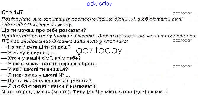 На страницах сайта gdz.today вы найдете учебный и вспомогательный материал, направленный на улучшения знаний школьной программы. ГДЗ - онлайн мир знаний Рішення до Страницы 147 Учебнику по Украинскому языку для 2 класса Охота, Хорошковская Освiта 2012