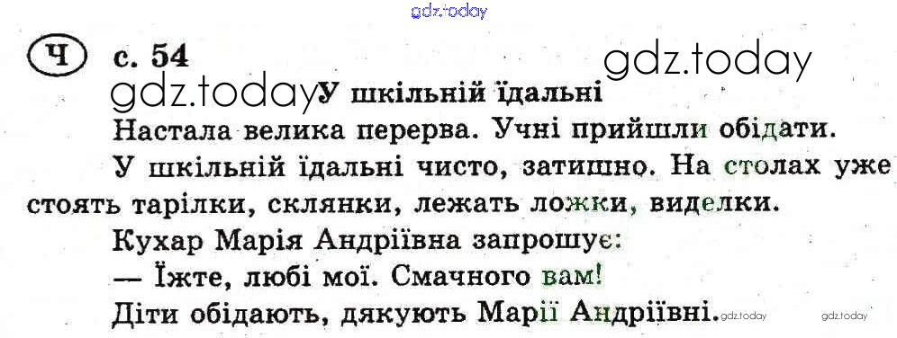 На страницах сайта gdz.today вы найдете учебный и вспомогательный материал, направленный на улучшения знаний школьной программы. ГДЗ - онлайн мир знаний Рішення до Страницы 54 Учебнику по Украинскому языку для 2 класса Охота, Хорошковская Освiта 2012