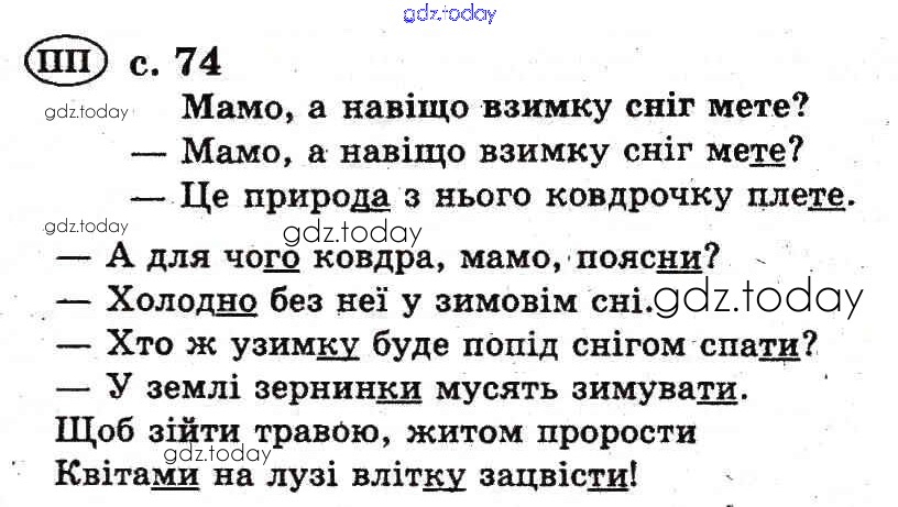На страницах сайта gdz.today вы найдете учебный и вспомогательный материал, направленный на улучшения знаний школьной программы. ГДЗ - онлайн мир знаний Рішення до Страницы 74 Учебнику по Украинскому языку для 2 класса Охота, Хорошковская Освiта 2012