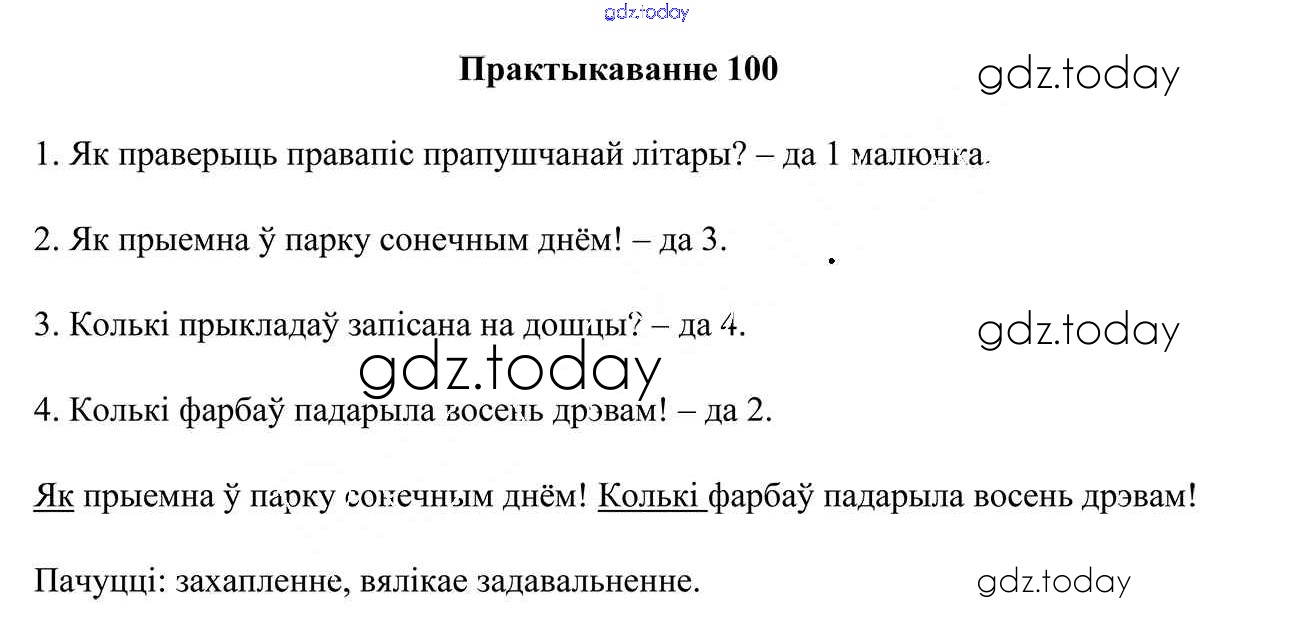 На страницах сайта gdz.today вы найдете учебный и вспомогательный материал, направленный на улучшения знаний школьной программы. ГДЗ - онлайн мир знаний Рашальнік да часткі 1. Практыкаванні 100 Учебнику по Белорусскому языку для 3 класса Свірыдзенка Национальный институт образования 2017