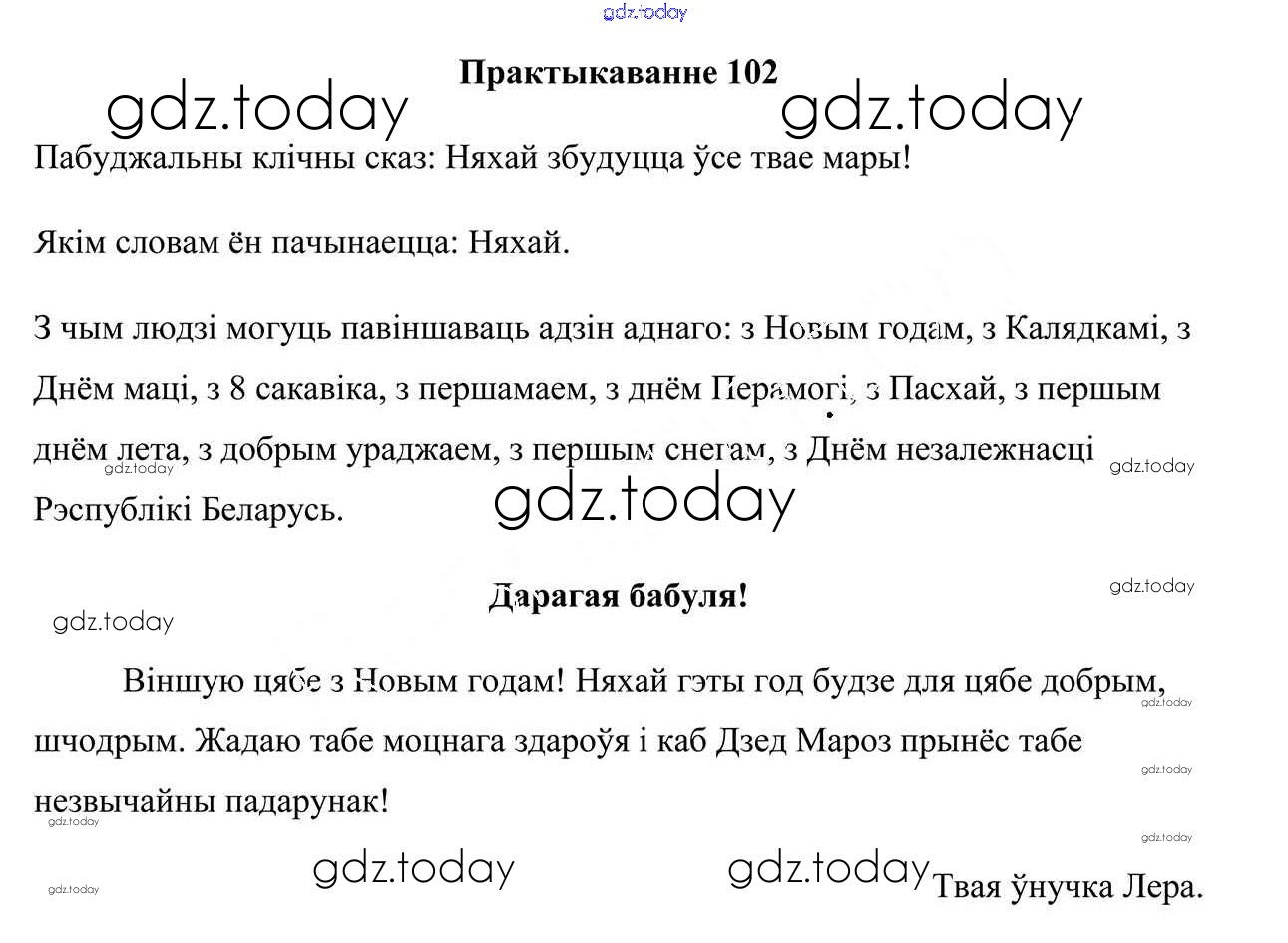 На страницах сайта gdz.today вы найдете учебный и вспомогательный материал, направленный на улучшения знаний школьной программы. ГДЗ - онлайн мир знаний Рашальнік да часткі 1. Практыкаванні 102 Учебнику по Белорусскому языку для 3 класса Свірыдзенка Национальный институт образования 2017