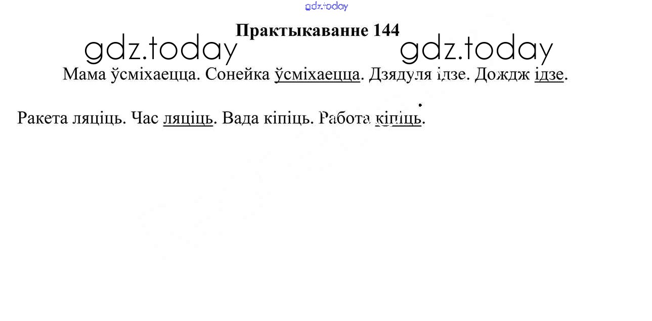 На страницах сайта gdz.today вы найдете учебный и вспомогательный материал, направленный на улучшения знаний школьной программы. ГДЗ - онлайн мир знаний Рашальнік да часткі 1. Практыкаванні 144 Учебнику по Белорусскому языку для 3 класса Свірыдзенка Национальный институт образования 2017