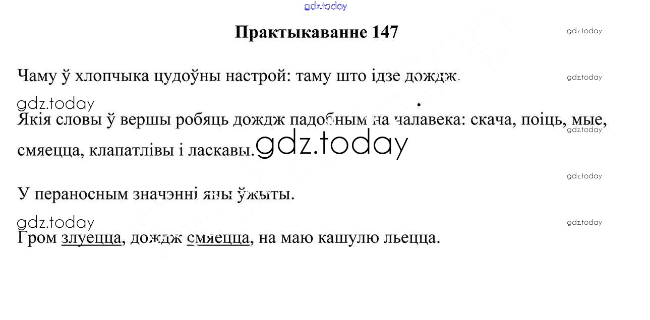 На страницах сайта gdz.today вы найдете учебный и вспомогательный материал, направленный на улучшения знаний школьной программы. ГДЗ - онлайн мир знаний Рашальнік да часткі 1. Практыкаванні 147 Учебнику по Белорусскому языку для 3 класса Свірыдзенка Национальный институт образования 2017