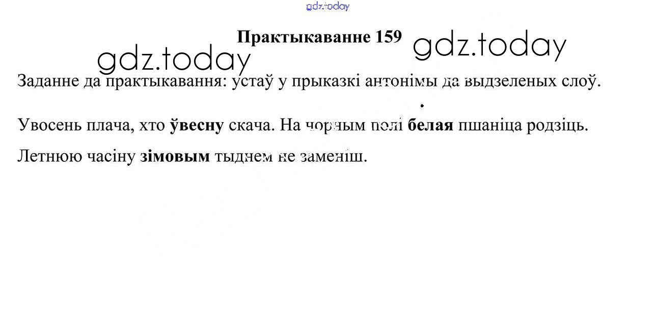 На страницах сайта gdz.today вы найдете учебный и вспомогательный материал, направленный на улучшения знаний школьной программы. ГДЗ - онлайн мир знаний Рашальнік да часткі 1. Практыкаванні 159 Учебнику по Белорусскому языку для 3 класса Свірыдзенка Национальный институт образования 2017
