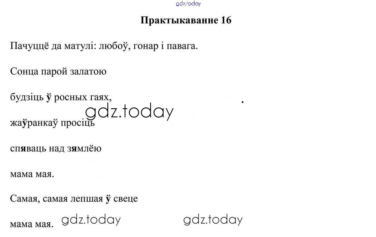 На страницах сайта gdz.today вы найдете учебный и вспомогательный материал, направленный на улучшения знаний школьной программы. ГДЗ - онлайн мир знаний Рашальнік да часткі 1. Практыкаванні 16 Учебнику по Белорусскому языку для 3 класса Свірыдзенка Национальный институт образования 2017