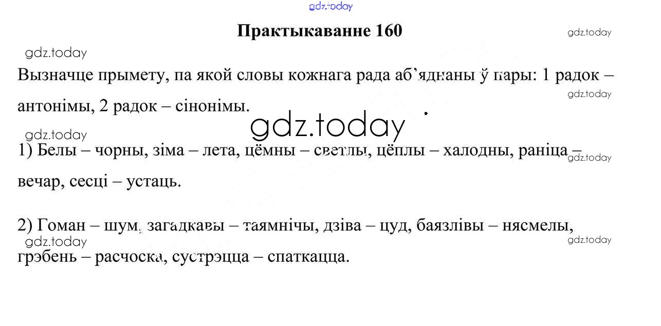 На страницах сайта gdz.today вы найдете учебный и вспомогательный материал, направленный на улучшения знаний школьной программы. ГДЗ - онлайн мир знаний Рашальнік да часткі 1. Практыкаванні 160 Учебнику по Белорусскому языку для 3 класса Свірыдзенка Национальный институт образования 2017