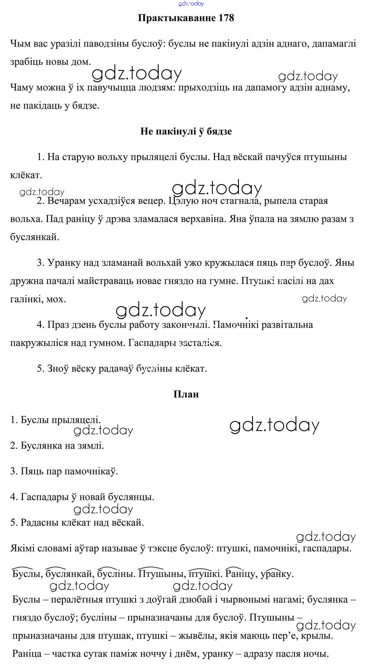 На страницах сайта gdz.today вы найдете учебный и вспомогательный материал, направленный на улучшения знаний школьной программы. ГДЗ - онлайн мир знаний Рашальнік да часткі 1. Практыкаванні 178 Учебнику по Белорусскому языку для 3 класса Свірыдзенка Национальный институт образования 2017