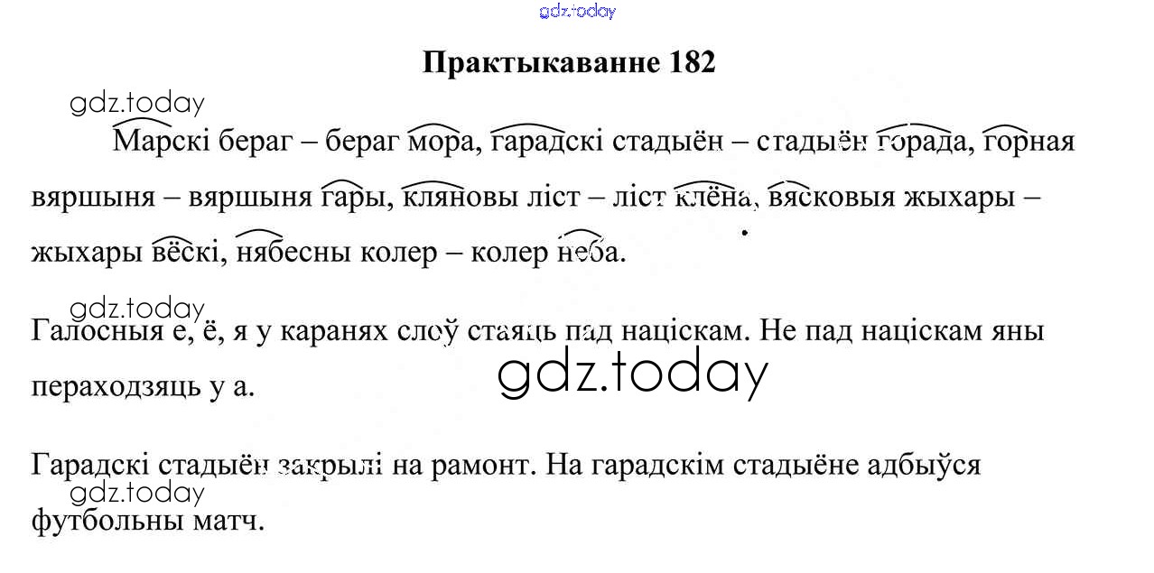 На страницах сайта gdz.today вы найдете учебный и вспомогательный материал, направленный на улучшения знаний школьной программы. ГДЗ - онлайн мир знаний Рашальнік да часткі 1. Практыкаванні 182 Учебнику по Белорусскому языку для 3 класса Свірыдзенка Национальный институт образования 2017