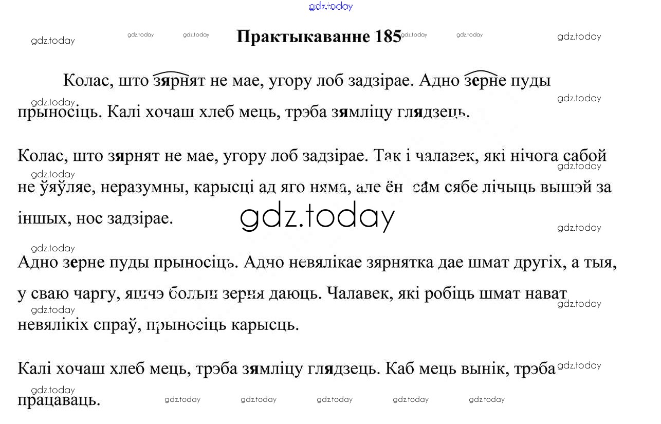На страницах сайта gdz.today вы найдете учебный и вспомогательный материал, направленный на улучшения знаний школьной программы. ГДЗ - онлайн мир знаний Рашальнік да часткі 1. Практыкаванні 185 Учебнику по Белорусскому языку для 3 класса Свірыдзенка Национальный институт образования 2017