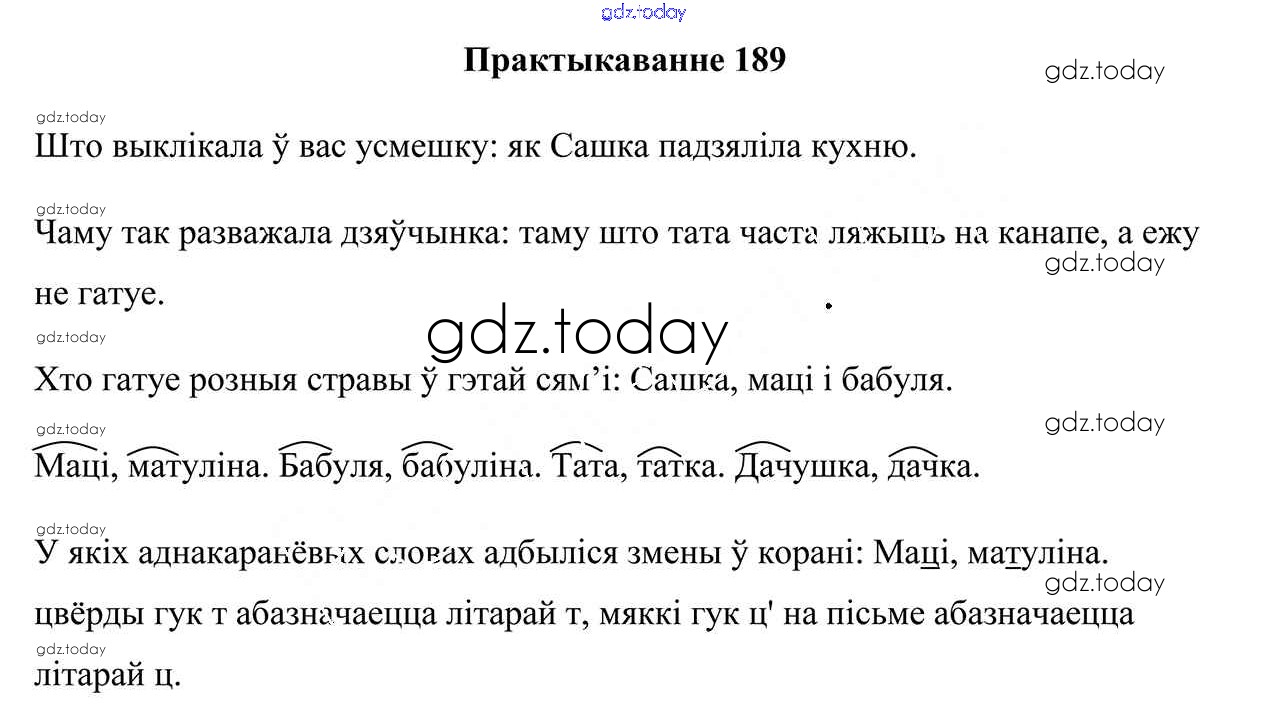 На страницах сайта gdz.today вы найдете учебный и вспомогательный материал, направленный на улучшения знаний школьной программы. ГДЗ - онлайн мир знаний Рашальнік да часткі 1. Практыкаванні 189 Учебнику по Белорусскому языку для 3 класса Свірыдзенка Национальный институт образования 2017
