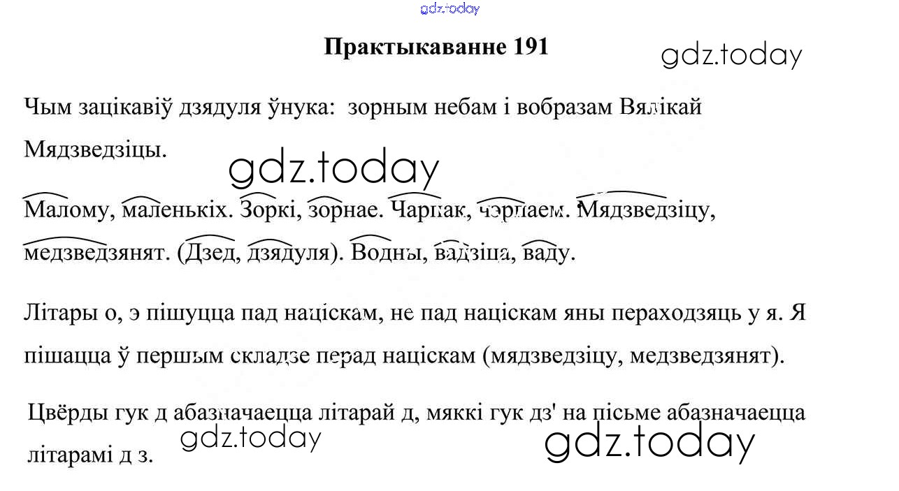 На страницах сайта gdz.today вы найдете учебный и вспомогательный материал, направленный на улучшения знаний школьной программы. ГДЗ - онлайн мир знаний Рашальнік да часткі 1. Практыкаванні 191 Учебнику по Белорусскому языку для 3 класса Свірыдзенка Национальный институт образования 2017