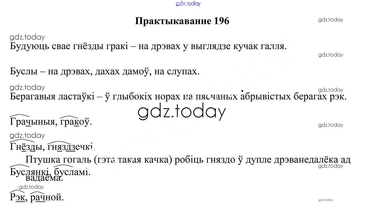 На страницах сайта gdz.today вы найдете учебный и вспомогательный материал, направленный на улучшения знаний школьной программы. ГДЗ - онлайн мир знаний Рашальнік да часткі 1. Практыкаванні 196 Учебнику по Белорусскому языку для 3 класса Свірыдзенка Национальный институт образования 2017