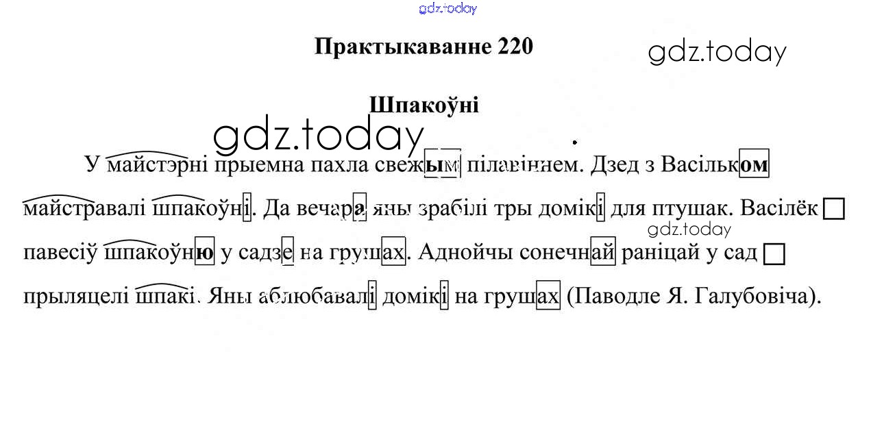 На страницах сайта gdz.today вы найдете учебный и вспомогательный материал, направленный на улучшения знаний школьной программы. ГДЗ - онлайн мир знаний Рашальнік да часткі 1. Практыкаванні 220 Учебнику по Белорусскому языку для 3 класса Свірыдзенка Национальный институт образования 2017