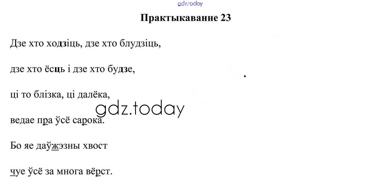 На страницах сайта gdz.today вы найдете учебный и вспомогательный материал, направленный на улучшения знаний школьной программы. ГДЗ - онлайн мир знаний Рашальнік да часткі 1. Практыкаванні 23 Учебнику по Белорусскому языку для 3 класса Свірыдзенка Национальный институт образования 2017