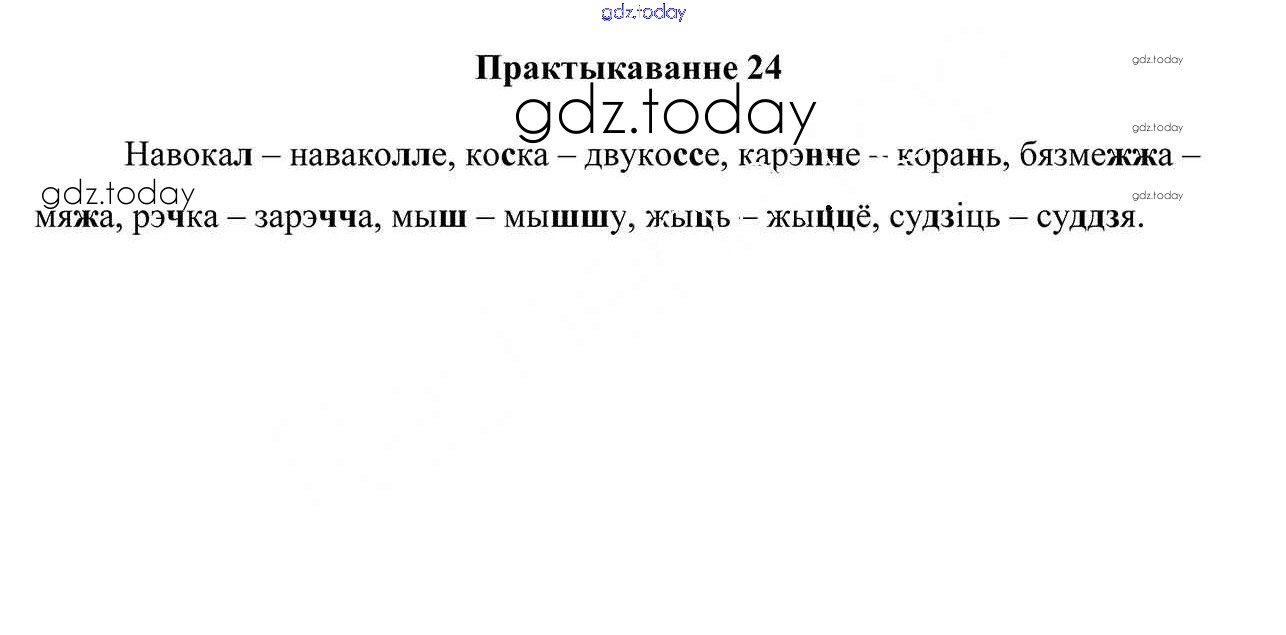 На страницах сайта gdz.today вы найдете учебный и вспомогательный материал, направленный на улучшения знаний школьной программы. ГДЗ - онлайн мир знаний Рашальнік да часткі 1. Практыкаванні 24 Учебнику по Белорусскому языку для 3 класса Свірыдзенка Национальный институт образования 2017